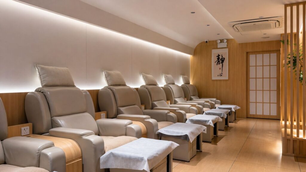 在忙碌的都市生活中,有時候我們需要一個地方去放慢腳步,尋求舒適與放松。歡迎您來足易按摩店—一個如家一般舒適,讓您忘卻疲倦,重拾生機的地方。步入芊沐足浴養生館,您將立刻感受到特有的舒適氛圍。室內裝潢陳設均以溫暖、自然的色調為主,讓您在享受按摩服務的過程中,「超級放鬆」