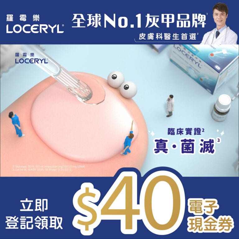 Reference: 1. 全球No 1暢銷外用治療灰甲藥物品牌 – Nicholas Hall’s global CHC database, DB6, 2019 銷售額數據 2. 26名私人皮膚科醫生就外用灰甲藥意見調查; IMS Health HK 2015 Topical Dermatological Antifungals Market Research with Private Dermatologists 3. Lecha M, JEADV 2005, 19 (Suppl 1) 25-33. 4. Mycoses. 2019; 00:1-8.; Dermatologic Therapy, Vol. 20, 2007, 31-46